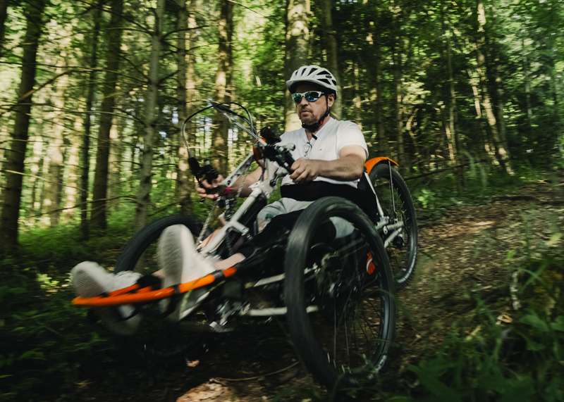 Che si tratti di sentieri ripidi o di passaggi scorrevoli, la FOXX stabilisce nuovi standard nella mountain bike adattiva. Il suo telaio innovativo e la sua geometria sofisticata assicurano un'esperienza di guida impareggiabile: senza sforzo in salita, precisa nei tratti pianeggianti e sicura nelle discese. La combinazione di un potente sistema di trasmissione, di una sofisticata cinematica a perno alto e di una distribuzione dei pesi ottimizzata garantisce il massimo controllo e divertimento di guida su qualsiasi terreno. Il meccanismo di sterzo diretto consente di sterzare con precisione, mentre le sospensioni appositamente tarate assorbono le asperità con facilità, per la massima trazione e stabilità.