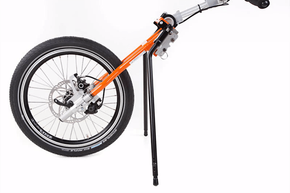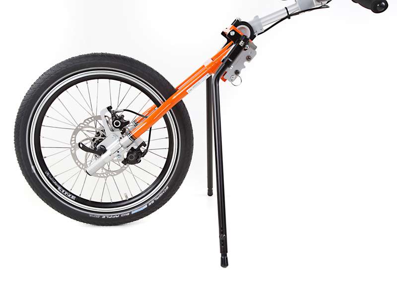 Con la rimozione semplice e rapida della ruota mediante leva a rilascio rapido si ottiene un ingombro ridotto. FREEWAY con un peso totale da 3 kg è facile da caricare.