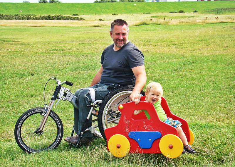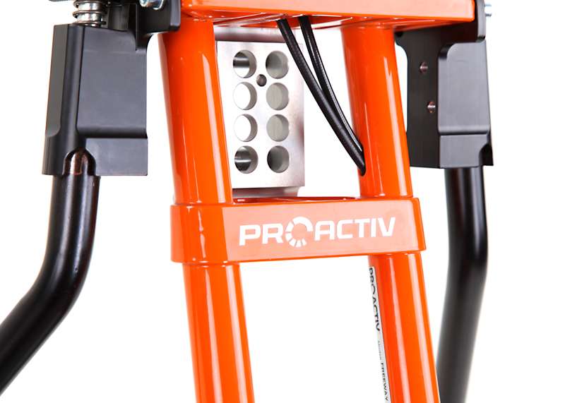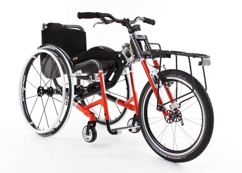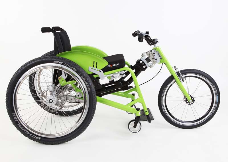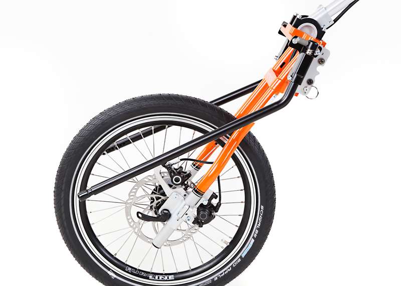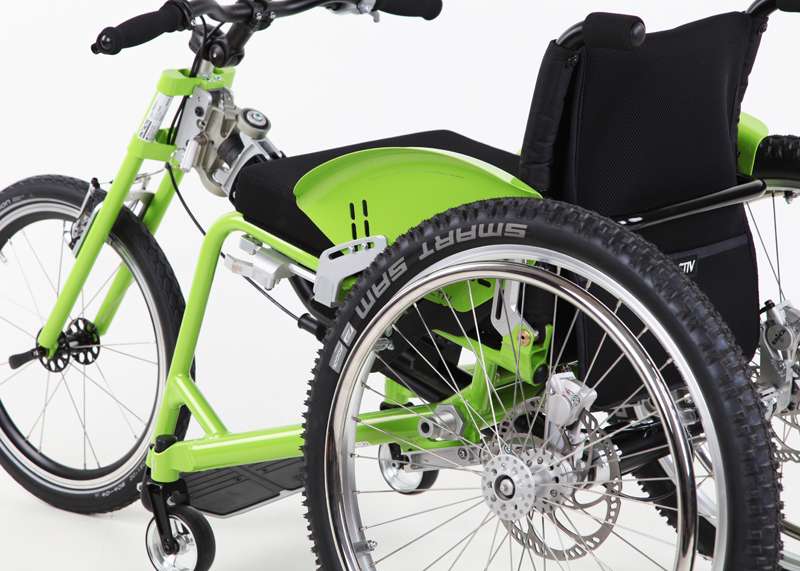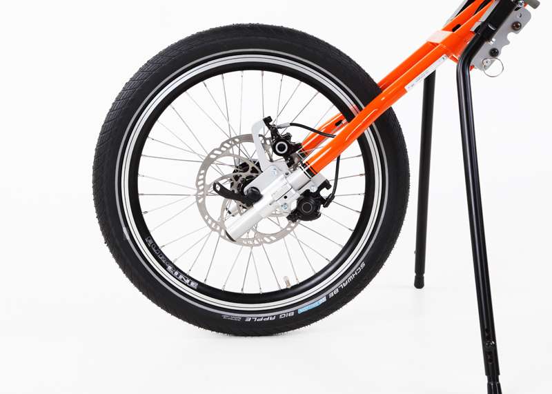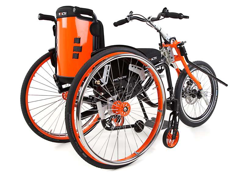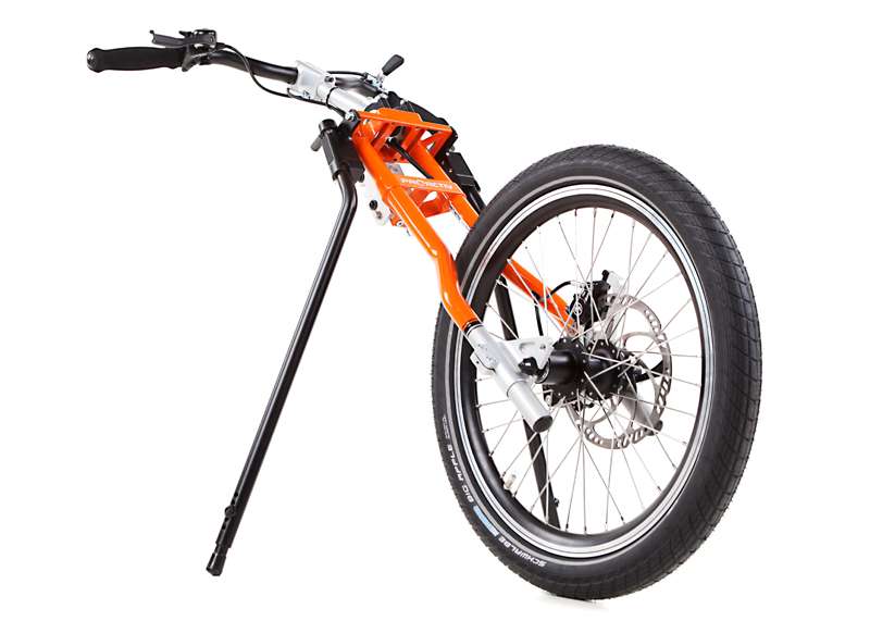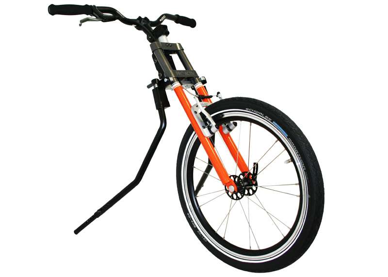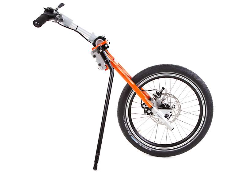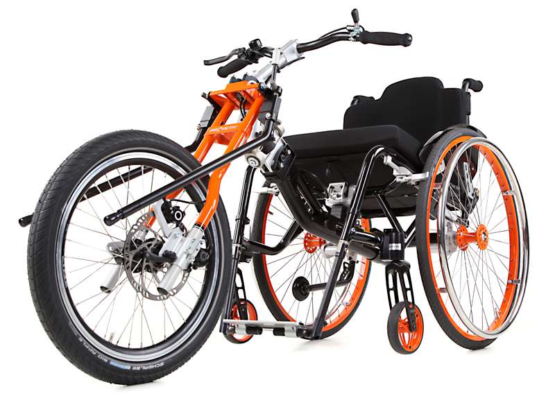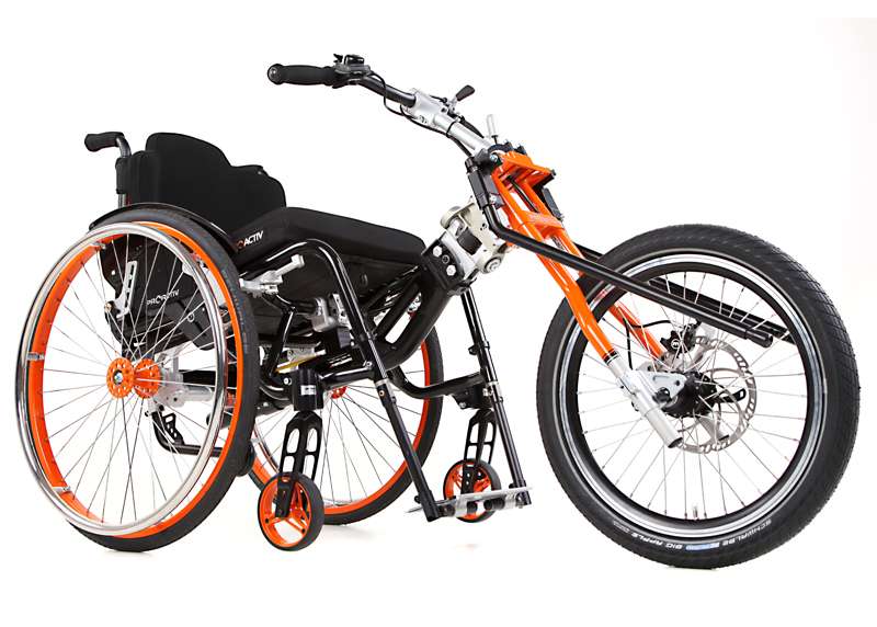 L'adattamento viene eseguito tramite un adattatore centrale (fissaggio sotto alla superficie di seduta sul tubo dell'asse e trasversale o sul meccanismo di piegatura) o adattatore frontale (fissaggio ai tubi del telaio anteriori). Sono sufficienti poche manovre per adattare gli adattatori sulla carrozzina o rimuoverli. Quando si disaccoppiano, rimane poco peso in più sulla carrozzina che non subisce alcuna limitazione nel suo funzionamento (ad es. meccanismo di piegatura). L'adattatore può essere utilizzato trasversalmente per tutte le biciclette adattive, dispositivi di trazione e attrezzi aggiuntivi PRO ACTIV con la stessa dimensione della ruota: UN solo adattatore per MOLTE combinazioni.