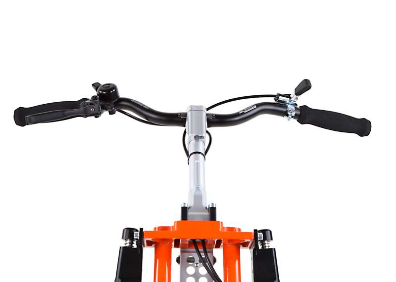 L'ammortizzatore dello sterzo tiene la ruota sempre in linea dritta, anche se la mano non si trova sul manubrio. Le curve sono realizzate senza perdite tramite lo sterzo, e non come al solito tramite movimenti di frenata e di spinta sui mancorrenti, i quali comportano sempre perdite nell'energia di spinta.