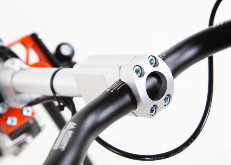 La posizione del manubrio è regolabile nell'angolazione e il piantone è disponibile in tre lunghezze. In questo modo la posizione del manubrio si adatta perfettamente al guidatore per una piacevole sensazione di guida e un controllo ottimale. Inoltre, l'adattatore è regolabile nell'inclinazione, nell'altezza e nella lunghezza.