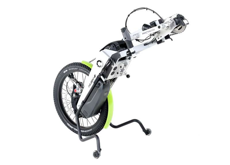 L'adattamento avviene tramite un adattatore centrale o anteriore, che può essere collegato e scollegato in pochi semplici passaggi. Una volta sganciato, non rimane quasi nessun peso aggiuntivo sulla carrozzina e la carrozzina non subisce alcuna restrizione funzionale (ad esempio, il meccanismo di piegatura). L'adattatore può essere utilizzato per tutte i bike adattivi, le trazioni e i dispositivi di aggancio PRO ACTIV con le stesse dimensioni delle ruote: Un solo adattatore per MOLTE combinazioni.