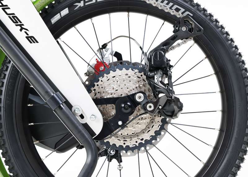 L'HUSK-E Shimano è la versione più potente, con una coppia di 85 Nm. Questa variante è progettata per i terreni sconnessi e per la topografia collinare e montuosa.