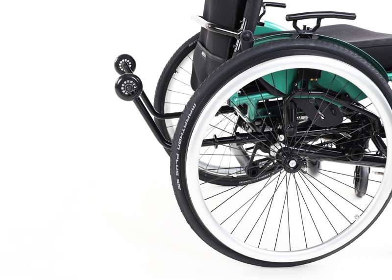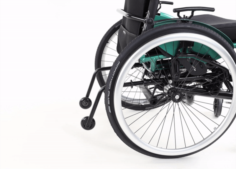 Come opzione supplementare allo schienale adattabile e allo schienale a conchiglia, è possibile scegliere la staffa posteriore Ergo Back che offre la possibilità di scaricare la schiena appoggiandosi all'indietro e visivamente un bell'effetto. Grazie all'area di impugnatura incassata non sono necessarie maniglie di spinta, prevenendo così di "essere spinti" involontariamente.