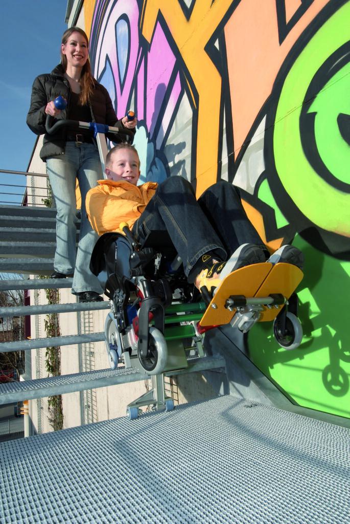 Applicato alla maggior parte delle carrozzine in commercio, s-max è dedicato a chi non vuole rinunciare ad una vita attiva, sia dentro che fuori casa. Grazie ad una struttura solida e sicura, è in grado di trasportare fino a 160 kg (nella versione maggiorata) e di superare qualsiasi tipo di scala.