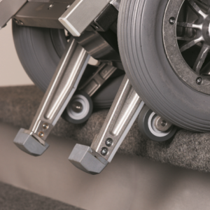 Gli spazi di manovra sono di circa 80 cm sul pianerottolo. Per gli spazi più ristretti è possibile ribaltare all’indietro la pedana poggiapiedi ottenendo un ingombro massimo di 730 mm.