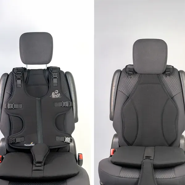 Se un seggiolino ortopedico per il trasporto in auto non è più adatto all'utilizzo e la cintura a 3 punti del veicolo offre troppo poco supporto, il sistema di bretellaggio THOMASHILFEN Octopus garantisce un posizionamento corretto e sicuro. Offre a bambini e adulti sostegno stabile senza restrizioni. Le fibbie della cintura sono bloccabili e impediscono pericolosi slacciamenti durante il tragitto. La maneggevolezza e il cambio rapido del veicolo rendono Octopus il compagno perfetto per la mobilità nella vita quotidiana delle famiglie.