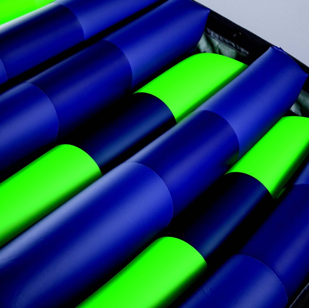 Composto da 20 celle ad elevatissima elasticità ed integralmente attive per tutto il loro spessore per adattarsi e conformarsi perfettamente alla morfologia del paziente. In puro poliuretano 100%, le celle sono indipendenti, intercomunicanti e singolarmente escludibili per la massima personalizzazione della superficie di appoggio alle esigenze posturali dell'utilizzatore e trasmettono ogni minima variazione di pressione al sensore integrato nell'unità di controllo in modo da ottimizzare costantemente il supporto al paziente in base al peso e alla postura assunta.
