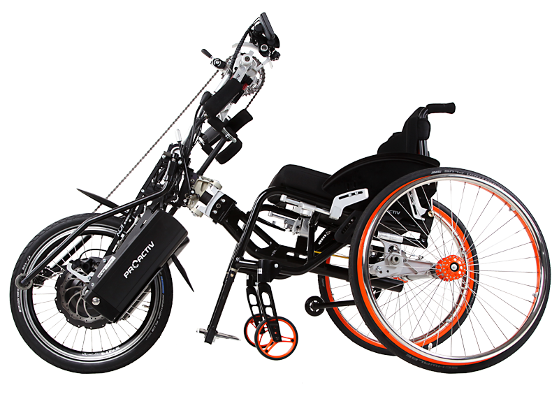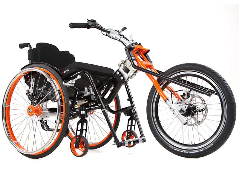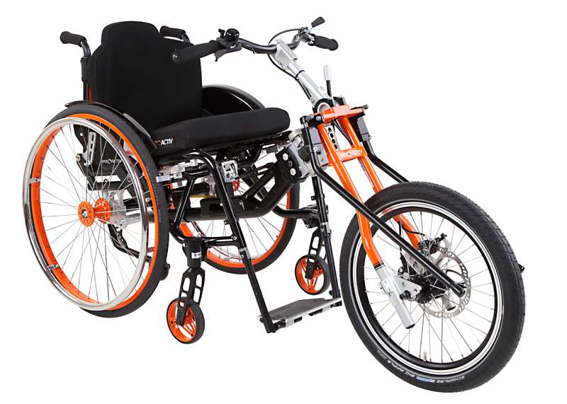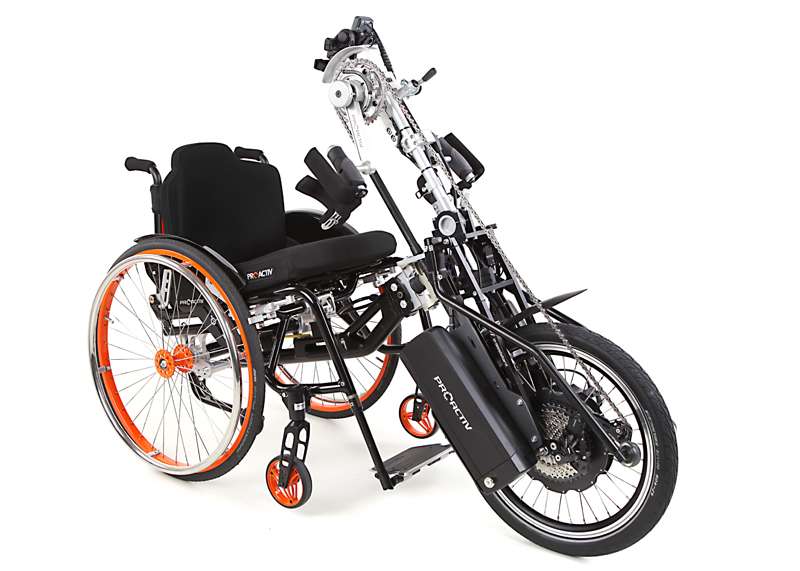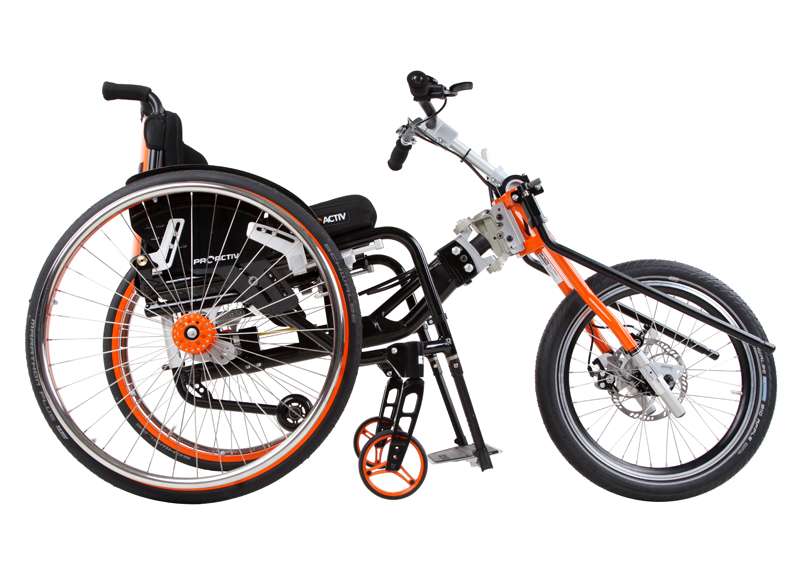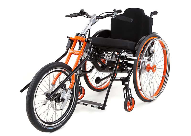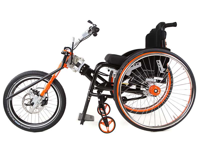 I dispositivi di trazione e le biciclette adattive sono accoppiabili mediante adattatori con poche mosse e, grazie al telaio stabile, guidabili in maniera ottimale. Come optional è possibile ottenere maggiore trazione tramite il prolungamento dell'interasse rimovibile che aumenta di poco il peso della carrozzina e, all'occorrenza, può essere facilmente applicato sulla carrozzina senza attrezzi.