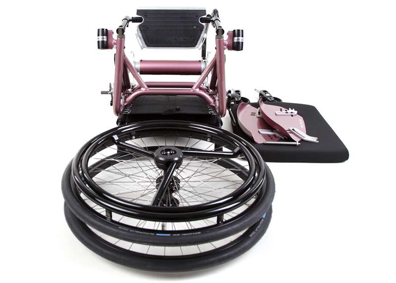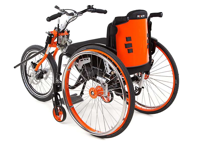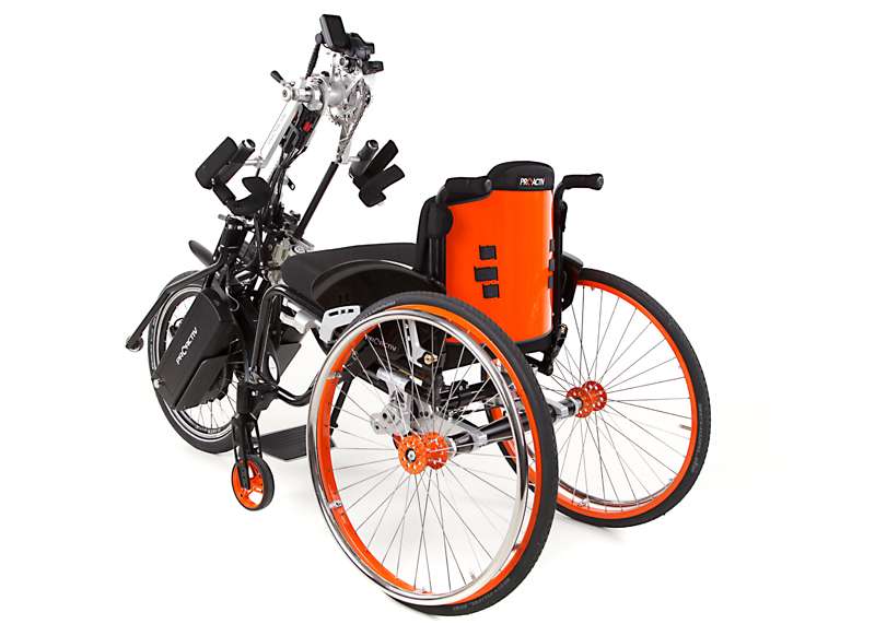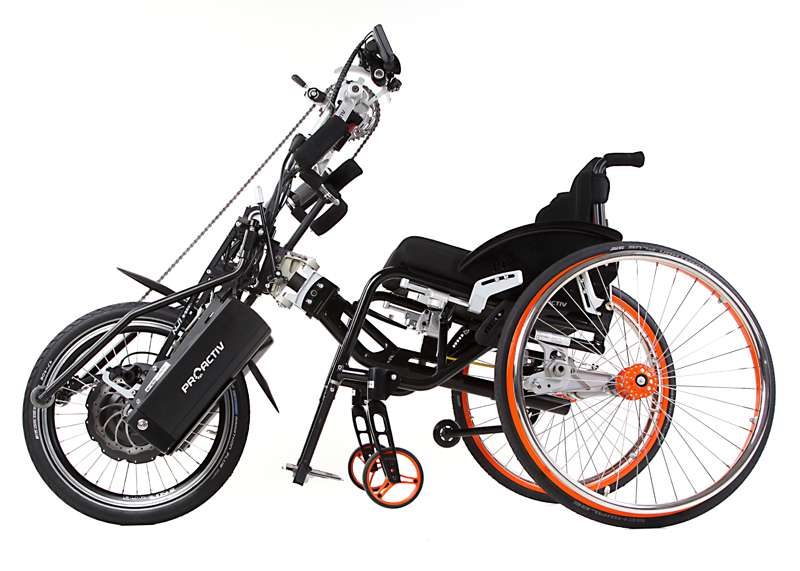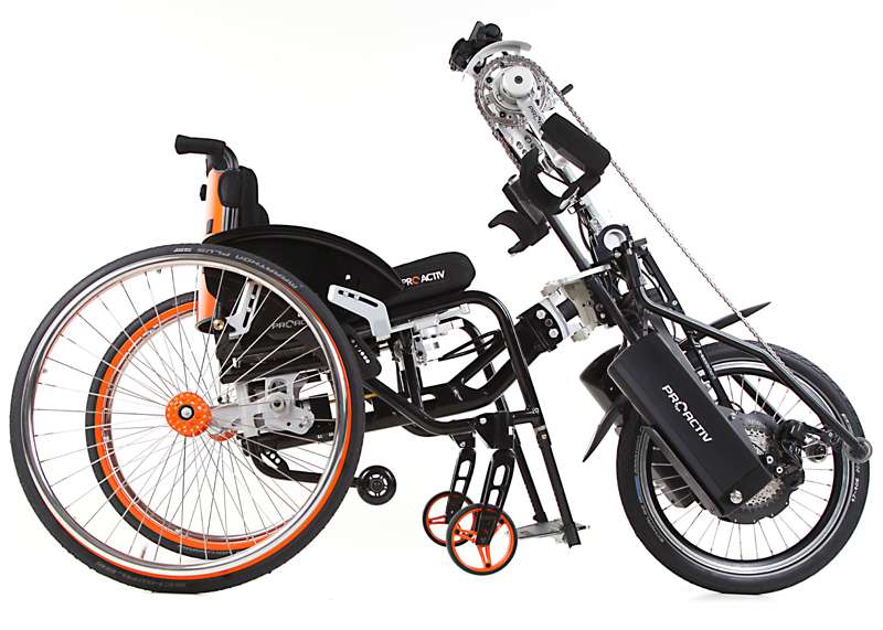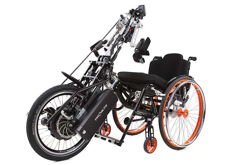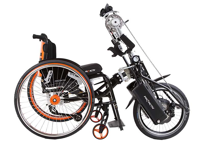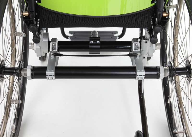 I dispositivi di trazione e le biciclette adattive sono accoppiabili mediante adattatori con poche mosse e, grazie al telaio stabile, guidabili in maniera ottimale. Come optional è possibile ottenere maggiore trazione tramite il prolungamento dell'interasse rimovibile che aumenta di poco il peso della carrozzina e, all'occorrenza, può essere facilmente applicato sulla carrozzina senza attrezzi.