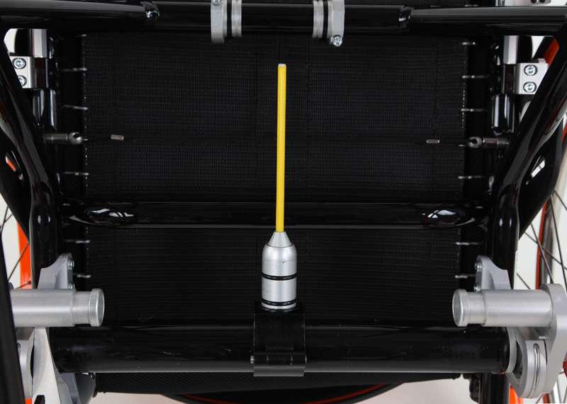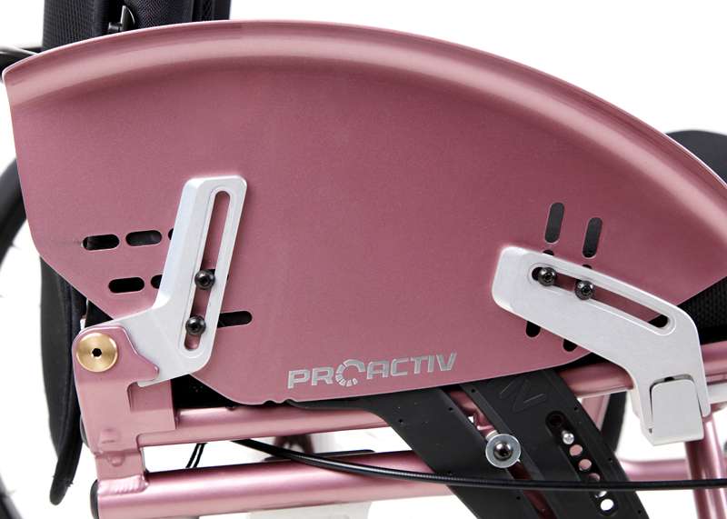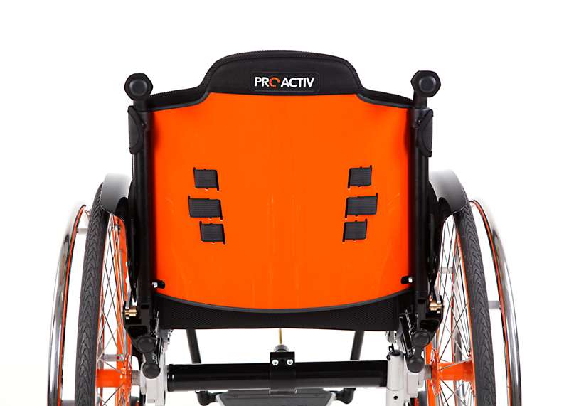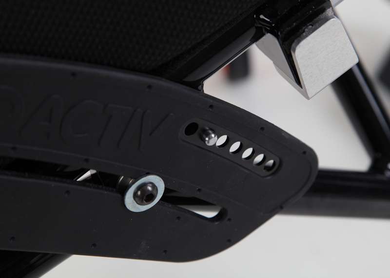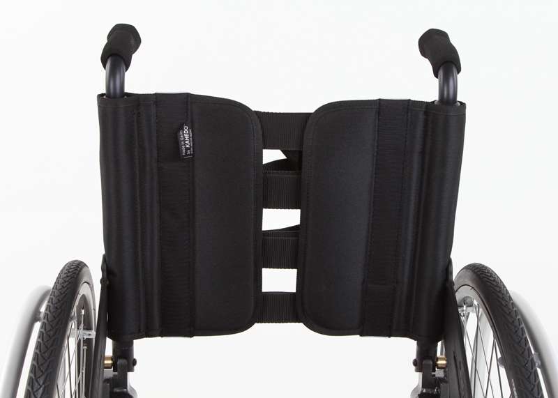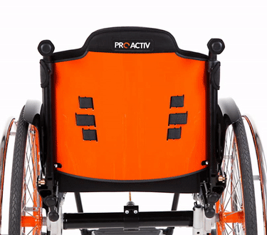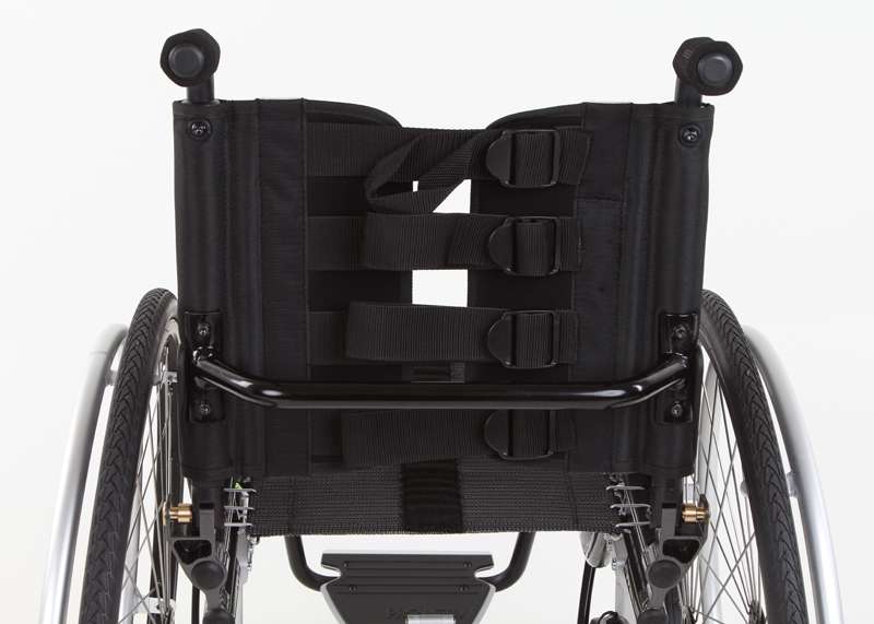 Lo schienale regolabile (senza attrezzi) nell'inclinazione in 7 posizioni e ribaltabile offre flessibilità per la posizione di seduta. Ciò è vantaggioso soprattutto quando si guidano una bicicletta adattiva e dispositivi di trazione poiché, a causa della modifica dell'inclinazione del sedile per le ruote sterzanti sollevate, la regolazione dell'angolazione dello schienale in avanti (ad angolo retto rispetto al suolo) risulta molto comoda. Questo schienale può essere realizzato come leggero schienale adattabile con imbottitura (sistema di cinghie nell'imbando regolabile in maniera ottimale e supporto lombare con imbottitura) o anche come stabile schienale a conchiglia (molto stabile con imbando fisso e supporto lombare regolabile).