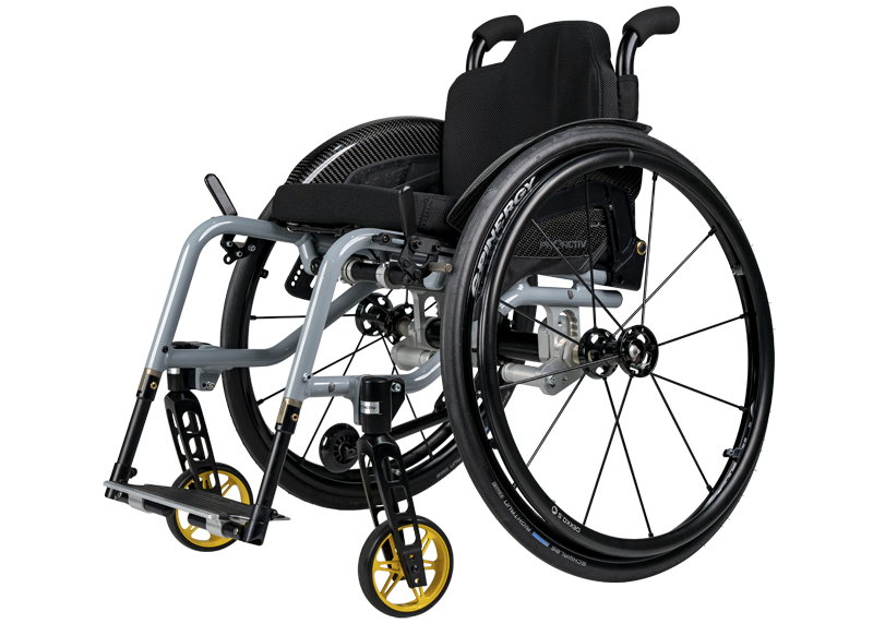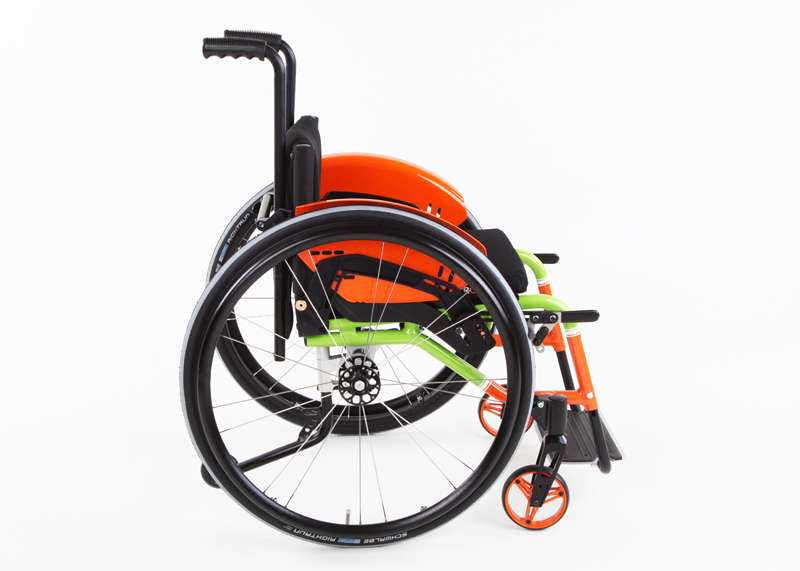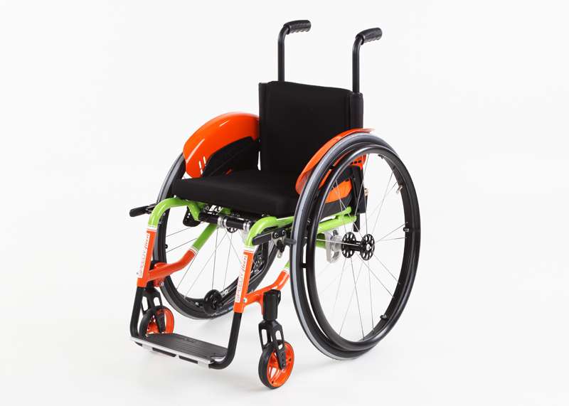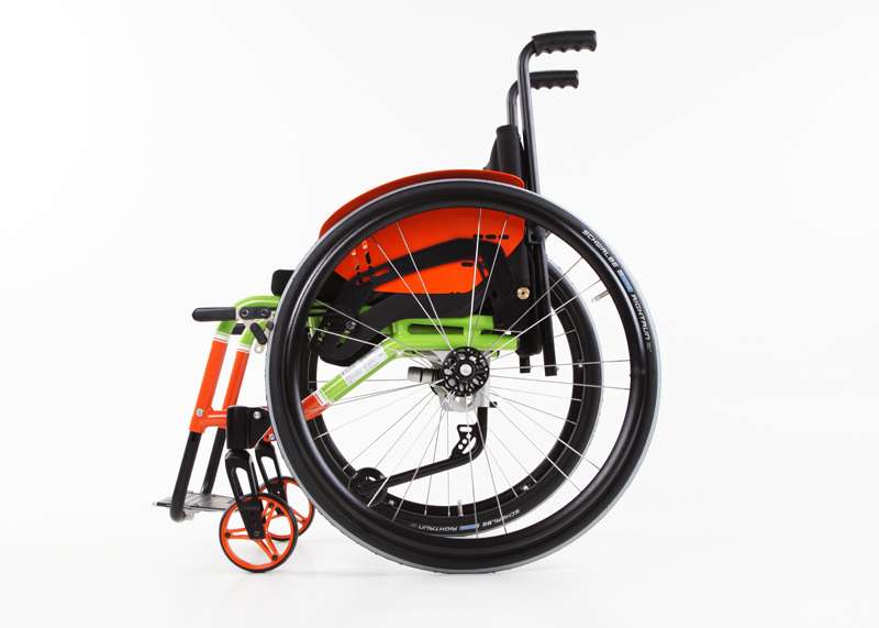 La guida del telaio ben definita e la lavorazione di alta qualità attribuiscono alla carrozzina per ragazzi un carattere sportivo con ingombro contenuto. È possibile scegliere liberamente tra 5 parametri di telaio e 3 di sospensione per adattare in maniera ottimale il telaio al suo guidatore. Il tubo del telaio superiore scorre dritto senza piegatura del sedile.