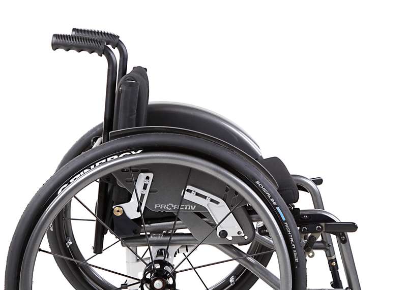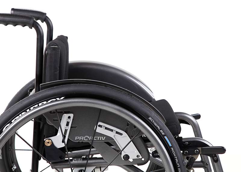 Lo schienale può essere realizzato come leggero schienale adattabile con imbottitura (sistema di cinghie nell'imbando regolabile in maniera ottimale e supporto lombare con imbottitura) o anche come stabile schienale a conchiglia (molto stabile con imbando fisso e supporto lombare regolabile). Come optional è possibile scegliere lo schienale nella variante regolabile nell'inclinazione in 7 posizioni e ribaltabile che offre flessibilità per la posizione di seduta. Ciò è vantaggioso soprattutto quando si guidano una bicicletta adattiva e dispositivi di trazione poiché, a causa della modifica dell'inclinazione del sedile per le ruote sterzanti sollevate, la regolazione dell'angolazione dello schienale in avanti (ad angolo retto rispetto al suolo) risulta molto comoda. Inoltre, ciò permette un ingombro ridotto per caricare il prodotto.