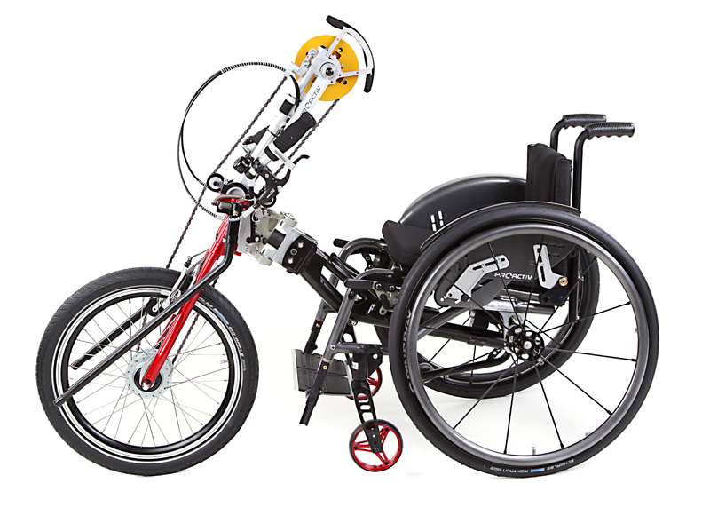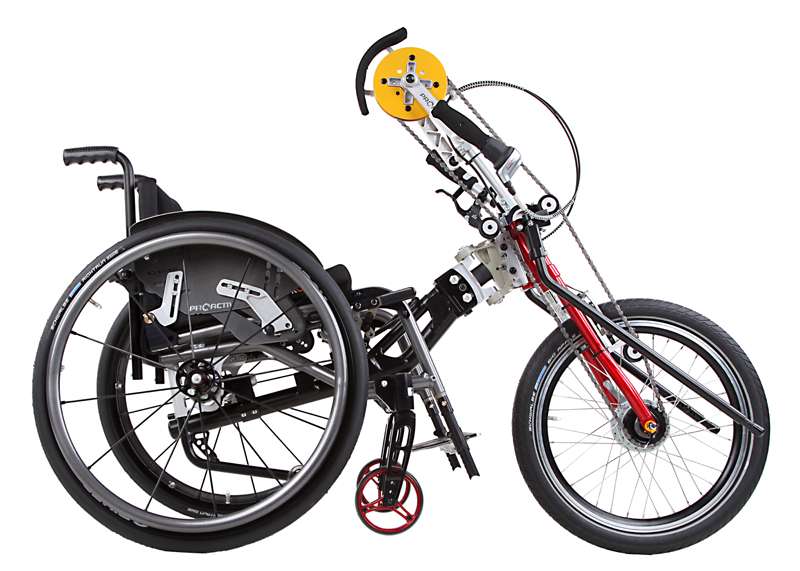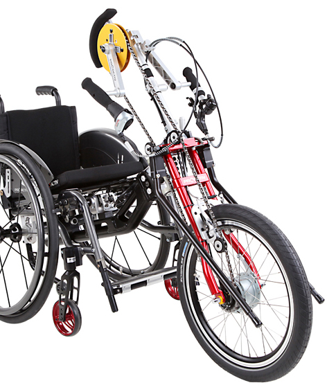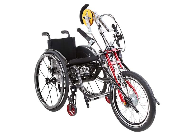 I dispositivi di trazione e le biciclette adattive sono accoppiabili mediante adattatori con poche mosse e, grazie al telaio stabile, guidabili in maniera ottimale. Come optional è possibile ottenere maggiore trazione tramite il prolungamento dell'interasse rimovibile che aumenta di poco il peso della carrozzina e, all'occorrenza, può essere facilmente applicato sulla carrozzina senza attrezzi.