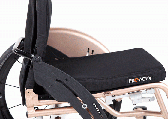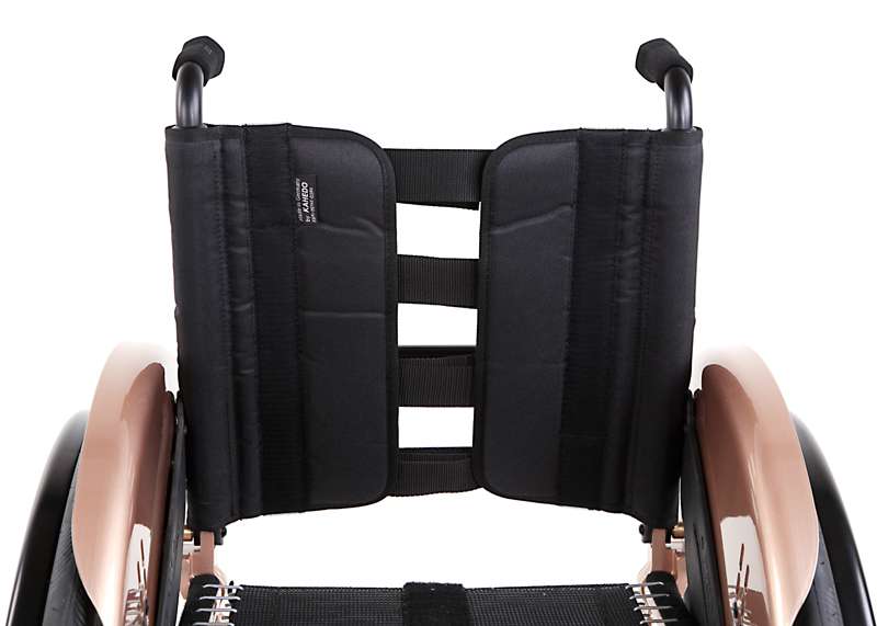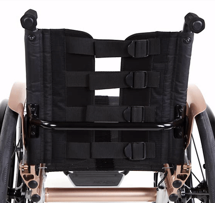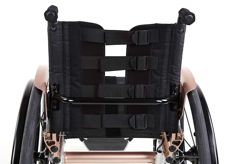 Lo schienale regolabile (senza attrezzi) nell'inclinazione in 7 posizioni e ribaltabile offre flessibilità per la posizione di seduta. Ciò è vantaggioso soprattutto quando si guidano una bicicletta adattiva e dispositivi di trazione poiché, a causa della modifica dell'inclinazione del sedile per le ruote sterzanti sollevate, la regolazione dell'angolazione dello schienale in avanti (ad angolo retto rispetto al suolo) risulta molto comoda. Questo schienale può essere realizzato come leggero schienale adattabile con imbottitura (sistema di cinghie nell'imbando regolabile in maniera ottimale e supporto lombare con imbottitura) o anche come stabile schienale a conchiglia (molto stabile con imbando fisso e supporto lombare regolabile).