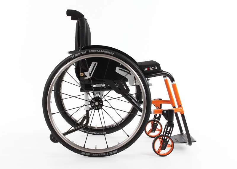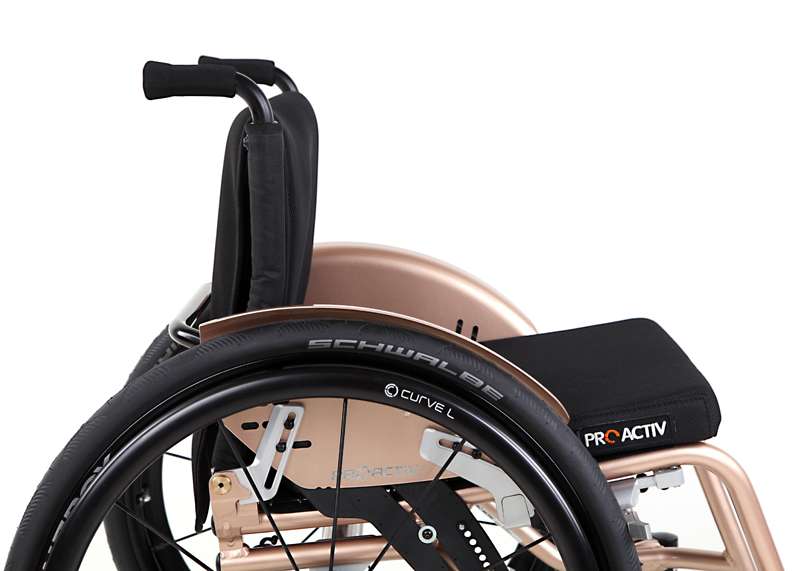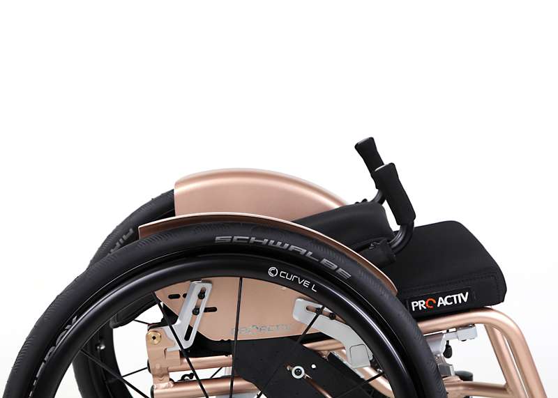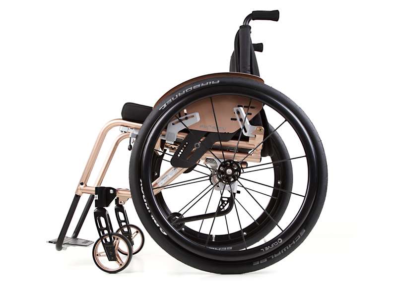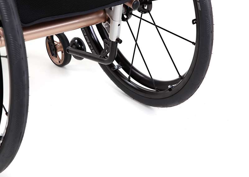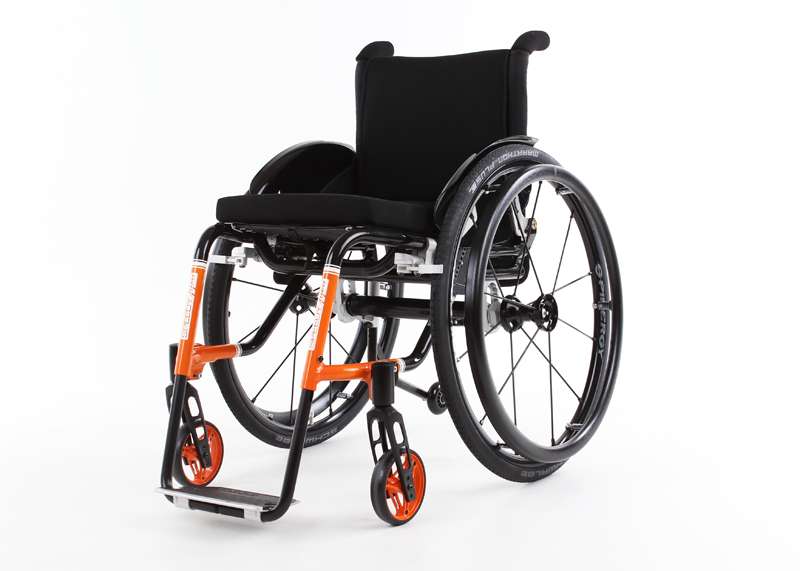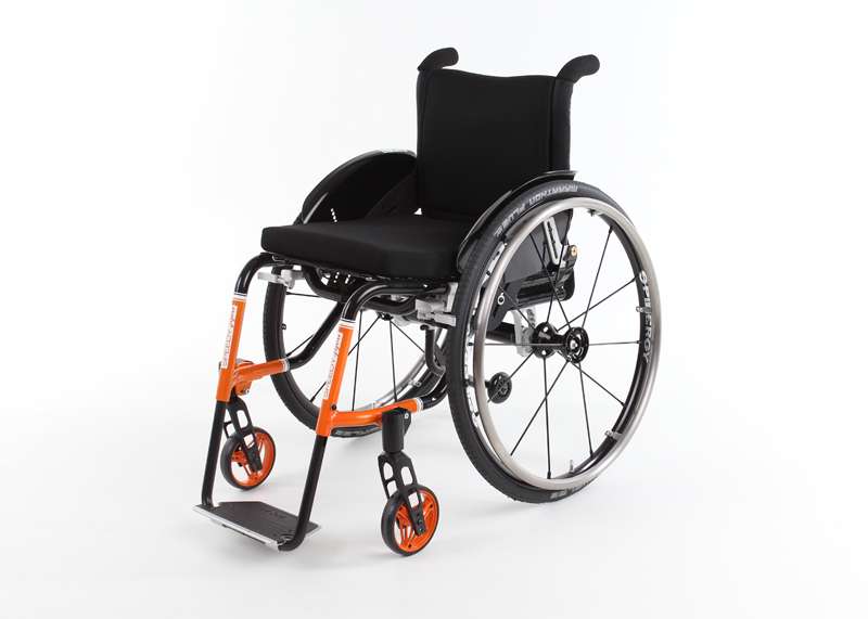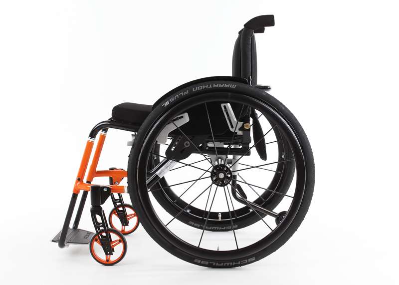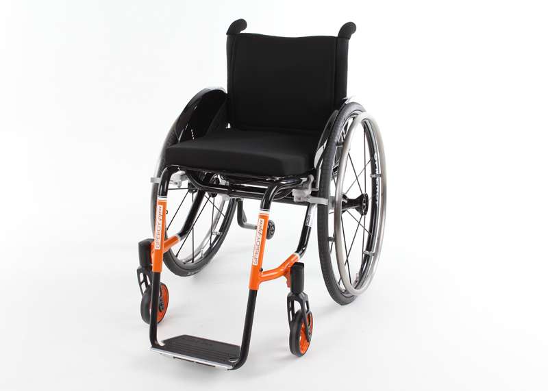 La carrozzina attiva con telaio rigido SPEEDY 4you serie Ergo si distingue per il telaio personalizzato dalla geometria raffinata. La piegatura del sedile permette una posizione di seduta stabile con "tuberstopp".