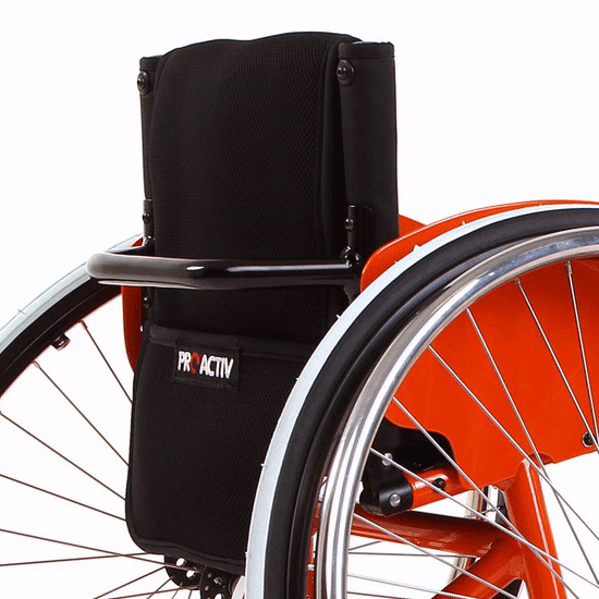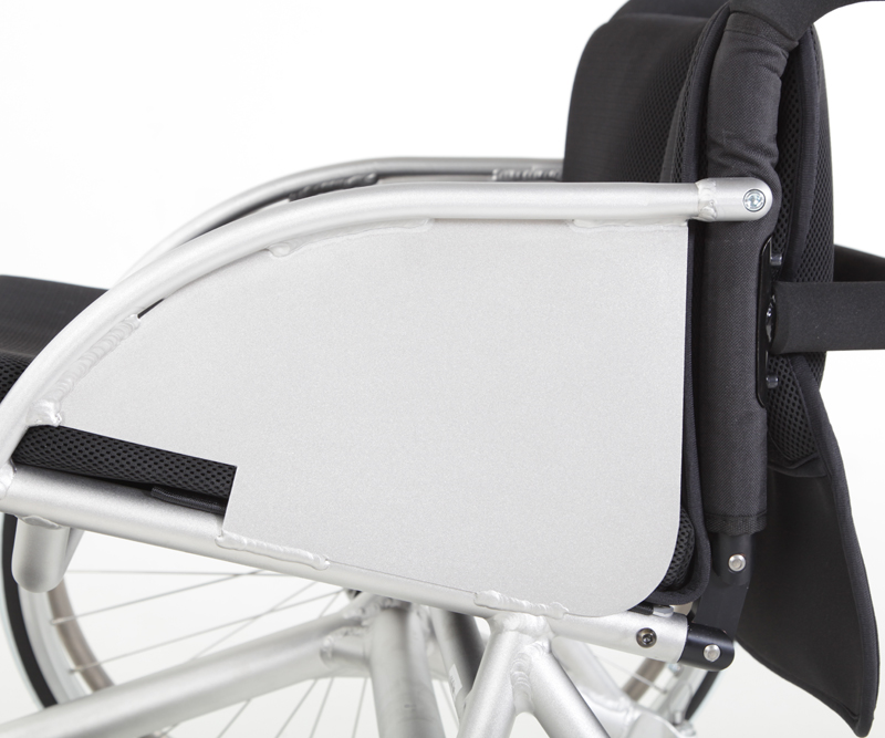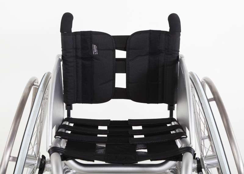 L'equipaggiamento di base prevede uno schienale leggero e fissato con le viti. Come optional è possibile scegliere uno schienale regolabile nell'inclinazione in 7 posizioni e ribaltabile (senza utensili) che offre flessibilità per la posizione di seduta e con la ripiegatura consente un ingombro ancora più ridotto. Questi schienali possono essere realizzati come leggero schienale adattabile con imbottitura (sistema di cinghie nell'imbando regolabile in maniera ottimale e supporto lombare con imbottitura) o anche come stabile schienale a conchiglia (molto stabile con imbando fisso e supporto lombare regolabile) con un'ottima libertà di movimento.