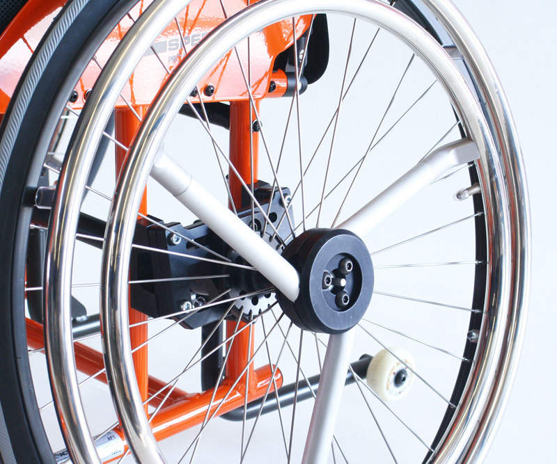 L'equipaggiamento con azionamento monocomando e piastra della ruota avvitata consente una regolazione del punto di ribaltamento e dell'altezza del sedile di ca. 1 - 2 cm, offrendo così flessibilità.