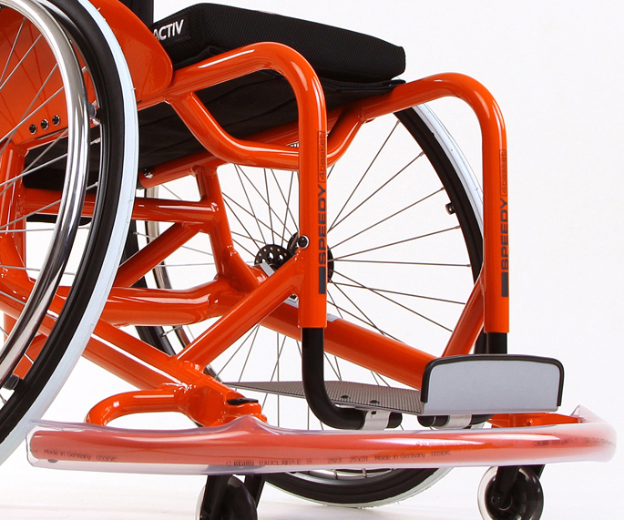 La carrozzina da pallacanestro SPEEDY F1 4basket con la possibilità di scegliere tra 9 parametri di telaio e 6 di sospensione come, p. es., l'angolo alle ginocchia, l'incasso del telaio, l'interasse e l'ampiezza superiore e inferiore della gamba, è l'individualista nella sua classe. Il telaio è prodotto sulla base delle misure individuali e dei desideri del conduttore della carrozzina.