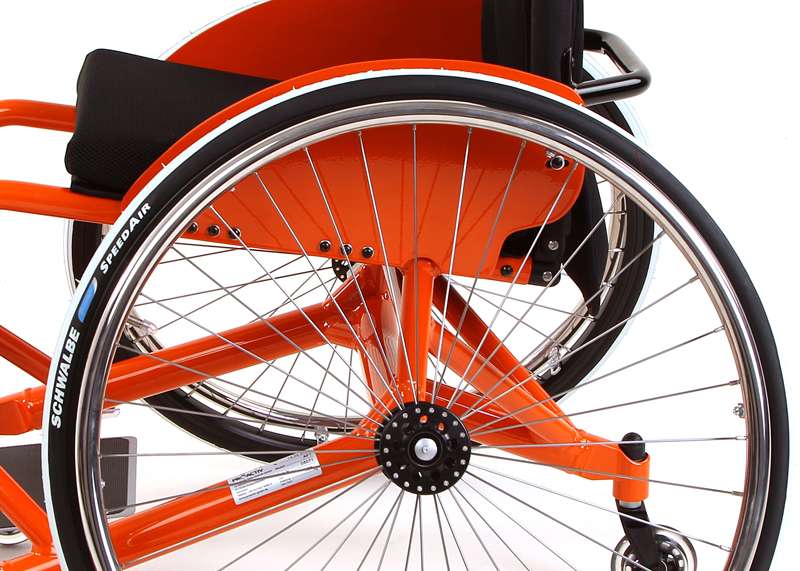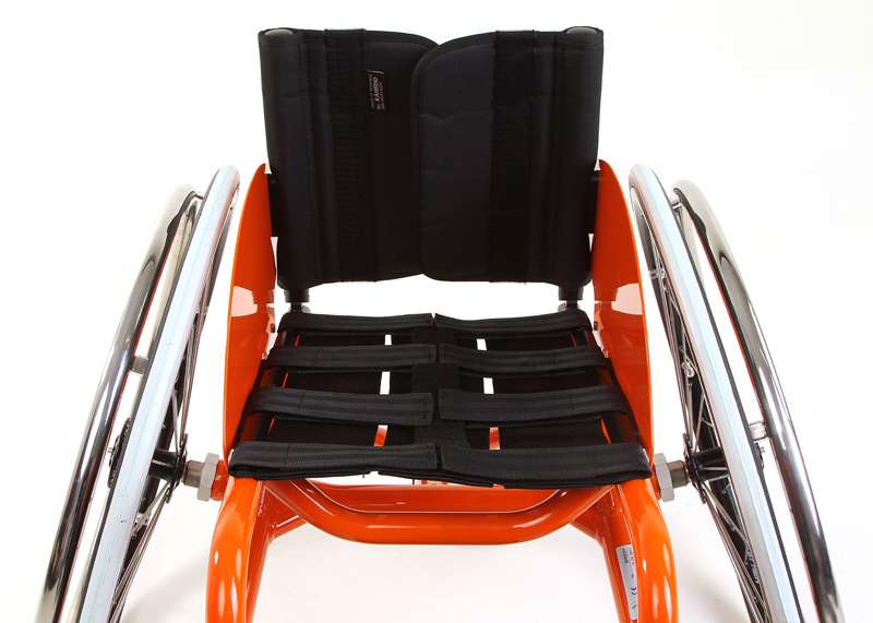 Nella SPEEDY F1 Overlite l'unità di seduta completa è composta secondo le misure individuali da un tubo di alluminio curvo. Ciò comporta un enorme risparmio di peso. Grazie allo schienale rigido non si manifesta alcun movimento nell'unità di seduta, in modo tale che la carrozzina reagisce a ogni piccolo movimento del conduttore.